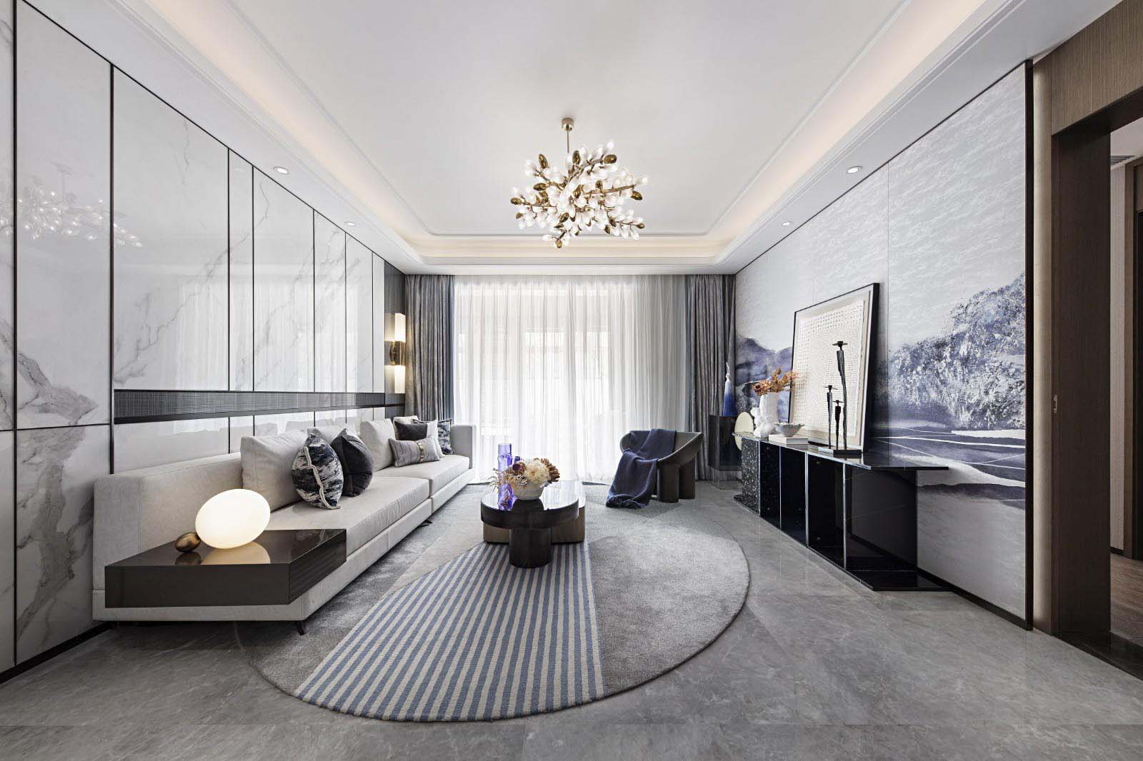 居所不僅是安身之所,也是靈魂的舒展之地。現代簡約是一種“大宅至簡”生活的態度,采用最直白的裝飾語將空間布局和使用功能完美結合,重視材料的質感及功能,推崇科學合理的構造工藝,結合業主的愛好及生活習慣,為空間賦予更多的精神內涵。當喧囂與繁華褪去,給予懂生活的人一處舒適寧靜的棲居之所。